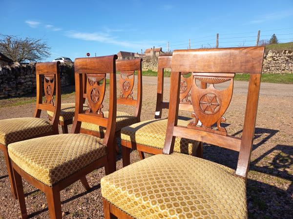 13 février 2026Suite de six chaises en noyer sculpté